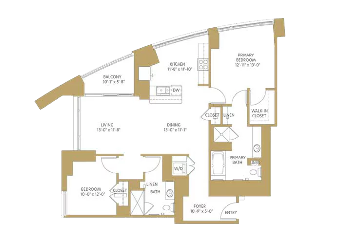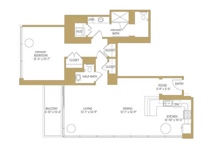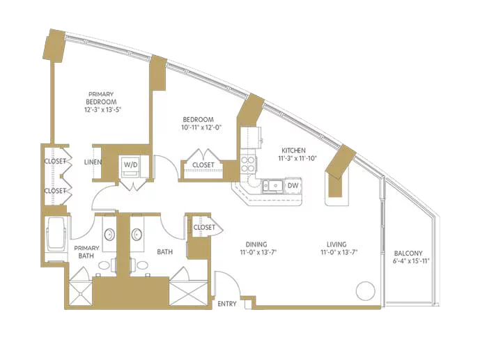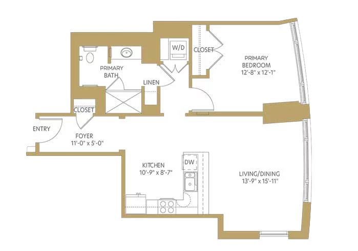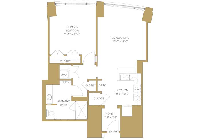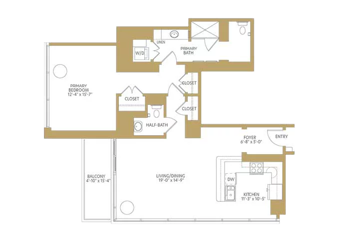 As a west-facing one-bedroom apartment home, The Whitehall offers ample storage space, a balcony, and extensive community amenities just steps away.